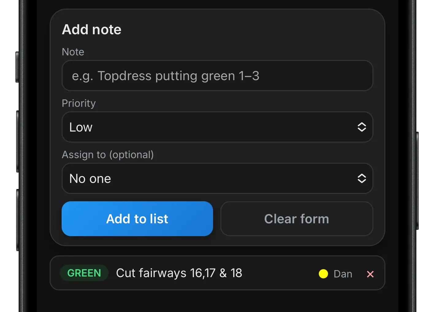 If a note is assigned to a staff member, their coloured dot appears on the Team Notes home tile.
